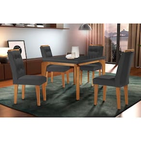 Sala de Jantar Completa Londrina c/ Tampo Madeirado c/ Vidro Canto Curvo 120x80cm e 4 cadeiras Imperatriz Imbuia/Grafite - Suede Grafite - Rufato