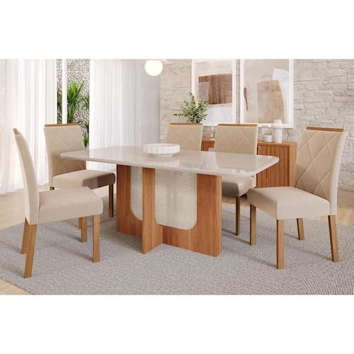 Sala de Jantar Completa Louise Tampo Madeirado c/ Vidro 180x90cm e 6 Cadeiras Fernanda Cinamomo/Off White - Nature-Madeirado/Suede Nu - Cimol Abaixo segue os produtos do KIT: Sala de Jantar Completa Louise Tampo Madeirado c/ Vidro 180x90cm e 6 Cadeiras Fernanda Cinamomo/Off White - Nature-Madeirado/Suede Nu - Cimol