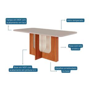 Mesa de Sala Jantar Louise c/ Tampo Madeirado c/ Vidro 180x90cm Cinamomo/Off White - Cimol