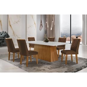 Sala de Jantar Completa Luna c/ Tampo de Vidro Canto Curvo 180x90cm e 6 cadeiras Jade Imbuia/Off White - Suede Marrom - Rufato Abaixo segue os produtos do KIT: Sala de Jantar Completa Luna c/ Tampo de Vidro Canto Curvo 180x90cm e 6 cadeiras Jade Imbuia/Off White - Suede Marrom - Rufato
