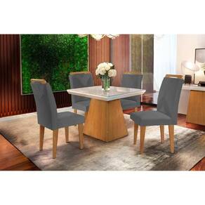 Sala de Jantar Completa Luna c/ Tampo Madeirado c/ Vidro Canto Curvo 90x90cm e 4 cadeiras Amsterdã Imbuia/Off White - Linho Grafite - Rufato
