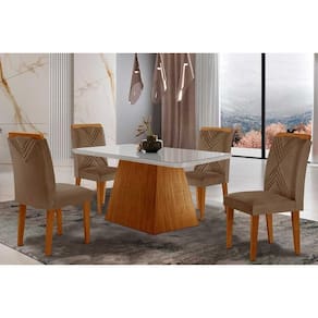 Sala de Jantar Completa Luna Tampo Madeirado c/ Vidro Canto Curvo 120x80 e 4 Cadeiras Amsterdã Imbuia/Suede Capuccino - Rufato