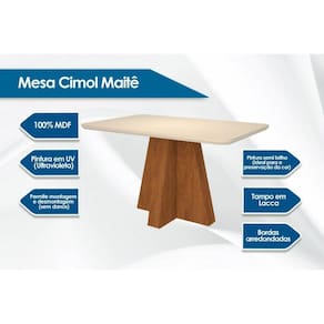 Mesa de Sala Jantar Maitê c/ Tampo Madeirado c/ Vidro Canto Curvo 160X80cm Savana-Nature/Off White - Cimol
