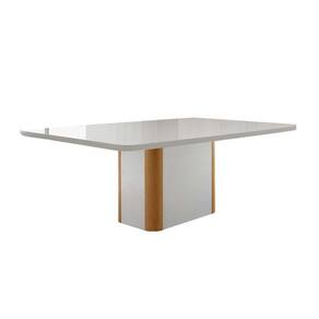 MESA JANTAR PIET? C/ TAMPO MDF/VIDRO CURVO 180CM OFF WHITE/NATURALE/OFF WHITE RUFATO