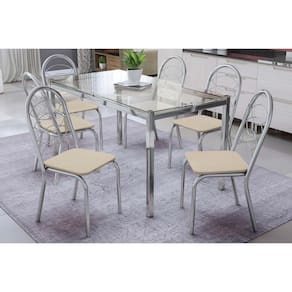 Sala de Jantar Completa Reno c/ Tampo Vidro 150x80cm e 6 Cadeiras Holanda Cromada - Assento Nude 16 - Kappesberg Abaixo segue os produtos do KIT: Sala de Jantar Completa Reno c/ Tampo Vidro 150x80cm e 6 Cadeiras Holanda Cromada - Assento Nude 16 - Kappesberg