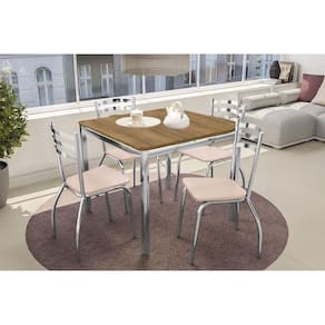 Conjunto: Mesa Sala Jantar Reno C/ Tampo De Madeira 90cm E 4 Cadeiras Portugal Cromada/nude 16 - Kappesberg