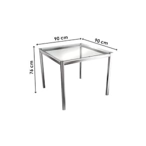 Sala de Jantar Completa Reno c/ Tampo de Vidro 90x90cm e 4 Cadeiras Lisboa Cromada - Branco - Kappesberg Abaixo segue os produtos do KIT: Sala de Jantar Completa Reno c/ Tampo de Vidro 90x90cm e 4 Cadeiras Lisboa Cromada - Branco - Kappesberg Tampo Mesa Sala de Jantar Vidro TAV9061 Vidro Quadrado 90x90cm Incolor - Kappesberg