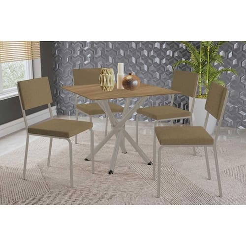 Sala de Jantar Completa Volga c/ Tampo de Madeira 90cm e 4 Cadeiras Zaria Niquel/Nogueira - Boucle Bege - Kappesberg Abaixo segue os produtos do KIT: Sala de Jantar Completa Volga c/ Tampo de Madeira 90cm e 4 Cadeiras Zaria Niquel/Nogueira - Boucle Bege - Kappesberg