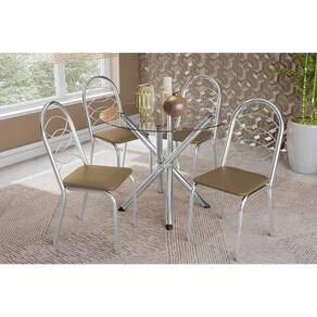 Sala de Jantar Completa Volga c/ Tampo de Vidro 95cm e 4 Cadeiras Holanda Cromada - Courano Capuccino - Kappesberg Abaixo segue os produtos do KIT: Sala de Jantar Completa Volga c/ Tampo de Vidro 95cm e 4 Cadeiras Holanda Cromada - Courano Capuccino - Kappesberg