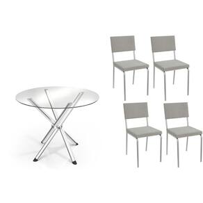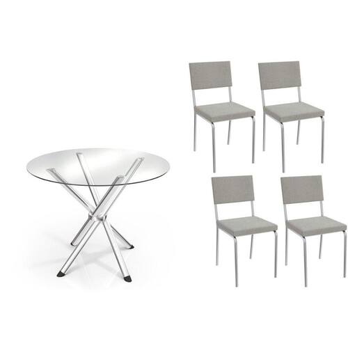 Sala de Jantar Completa Volga c/ Tampo de Vidro 95cm e 4 Cadeiras Zaria Cromada - Boucle Cinza - Kappesberg Abaixo segue os produtos do KIT: Sala de Jantar Completa Volga c/ Tampo de Vidro 95cm e 4 Cadeiras Zaria Cromada - Boucle Cinza - Kappesberg