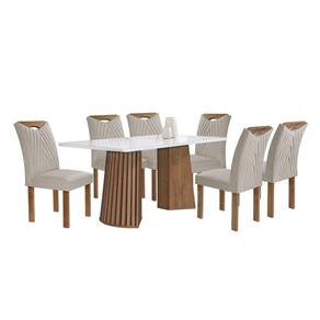 Renove sua sala de jantar com o conjunto Mesa Stella, acompanhado por seis cadeiras. A mesa tem um visual moderno, com linhas suaves e elegantes. As cadeiras são confortáveis e têm um estilo sofisticado. Juntos, eles fazem da sua sala de jantar um lugar especial para reunir a família e os amigos. Medida da Mesa (A x L x P): 79cmx170cmx90cm Peso da Mesa: 69,5 kg Mesa suporta até: 40.0000 Acabamento da Cadeira/Banco: Pintura Acabamento da Mesa: Pintura UV Acompanha Manual de Instalação: Sim Almofada do assento: Fixa Ambiente Principal: Sala de Jantar Cadeira/Banco estofada: Encosto e Assento Estofados Cadeira/Banco Estofada: Encosto e Assento Estofados Cadeira/Banco suporta até: 120.0000 codigo_ean: 7909903599020 Complexidade da Montagem: Alta: deve ser montado por um montador especializado Cor: Chocolate/Off White/Veludo Bege Claro Cor do Produto: Chocolate/Off White/Veludo Bege Claro De Canto (Canto Alemão): Não Design da Base: Cilindro Enchimento do Assento: Espuma D-23 Enchimento do Encosto: Espuma D-20 Escala de Brilho: Fosco Espessura do Tampo: 29 mm Estrutura do Assento: MDF Estrutura do Encosto: MDF Formato do Tampo: Retangular Itens Inclusos: 1 Mesa Stella com 6 cadeiras e manual de montagem Linha ou Coleção: Stella Manual de Montagem e Instalação: https://product-hub-prd.madeiramadeira.com.br/895885/documents/b7f7acae-dccb-4ae9-89cf-09d6e0133bbeA20NEVADA20CADEIRA20NEVADA.pdf Material da Base da Mesa: MDF Material da Estrutura da Cadeira: MDF Material do Tampo: Vidro/MDF Material Principal: MDF Material Principal das Cadeiras/Bancos: MDF Medida da Cadeira/Banco (A x L x P): 96,5cmx56cmx44cm Medida do Tampo (L x C x E): 170cmx90cmx2,9cm Mesa Dobrável: Não Mesa Extensível: Não Necessita Montagem: Sim Origem do Produto: Nacional Peso da Cadeira/Banco: 9,1 kg Possui Apoio para Braços: Não Possui Apoio Para os Pés: Não Possui Prateleiras: Não Possui Suporte Giratório: Não Possui Vidro: Sim Quantidade de Cadeiras: 6 Quantidade de Lugares: 06 Recomendações de Uso, Manutenção e Limpeza: Limpar apenas com pano úmido. Revestimento da Cadeira/Banco: Veludo Sistema de Montagem: Parafusos Tipo de Assento: Fixo Tipo de Encosto: Fixo