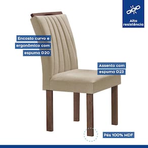 O design versátil e a fabricação de alta qualidade que a sua casa merece. A mesa Kyra com 6 cadeiras Arizona são perfeitas para qualquer ambiente de sala de jantar, seja ele clássico, contemporâneo ou moderno. Com tampo de vidro/MDF e cadeira estofada e confortável, receber os amigos e família para compartilhar as refeições se torna momentos memoráveis. Medida da Mesa (A x L x P): 79cmx170cmx90cm Peso da Mesa: 55 kg Mesa suporta até: 30.0000 Acabamento da Cadeira/Banco: Pintura Acabamento da Mesa: Pintura UV Almofada do assento: Fixa Ambiente Principal: Sala de Jantar Apoio para Braços Estofado: Não Cadeira/Banco estofada: Encosto e Assento Estofados Cadeira/Banco suporta até: 120.0000 codigo_ean: 7909903350997 Complexidade da Montagem: Média: pode ser montado por mais de uma pessoa e/ou necessite de maior conhecimento para montagem Cor: Chocolate/Off White/Suede Cru Cor do Produto: Chocolate/Off White/Suede Cru De Canto (Canto Alemão): Não Enchimento do Assento: Espuma D-23 Enchimento do Encosto: Espuma D-20 Escala de Brilho: Fosco Espessura do Tampo: 29 mm Estrutura do Assento: MDF Formato do Tampo: Retangular Itens Inclusos: 1 Mesa, 6 Cadeiras, kit ferragens e manual de montagem Linha ou Coleção: Kyra/Arizona Manual de Montagem e Instalação: https://product-hub-prd.madeiramadeira.com.br/855053/documents/e7ff6764-6eee-4a30-a6b6-b63b938de98e1387720manualdemontagem.pdf Manutenção: Limpeza com pano macio e levemente umedecido. Não utilizar solventes a base e de inflamáveis. Não utilizar produtos abrasivos. Material da Base da Mesa: MDF Material da Estrutura da Cadeira: MDF Material do Tampo: Vidro/MDF Medida da Base (A x L x P): 77cmx94cmx67cm Medida da Cadeira/Banco (A x L x P): 97,5cmx44cmx58cm Medida do Tampo (L x C x E): 170cmx90cmx29mm Mesa Extensível: Não Necessita Montagem: Sim Origem do Produto: Nacional Peso da Cadeira/Banco: 9 kg Possui Apoio para Braços: Não Possui Apoio Para os Pés: Não Possui Suporte Giratório: Não Quantidade de Cadeiras: 6 Quantidade de Lugares: 06 Recomendações de Uso, Manutenção e Limpeza: Limpeza com pano macio e levemente umedecido. Não utilizar solventes a base e de inflamáveis. Não utilizar produtos abrasivos. Revestimento da Cadeira/Banco: Suede Sistema de Montagem: Parafusos Vidro Temperado: Sim