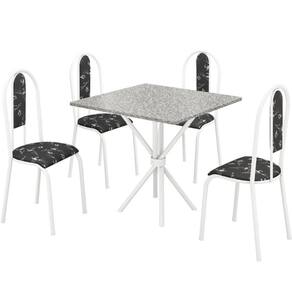Conjunto de mesa tubular com 04 cadeiras Berlim em tubo 7/8" branco com estofado em courino preto floral, base tubular de 1 1/4" e tampo de 0,75x0,75 em granito ocre.
