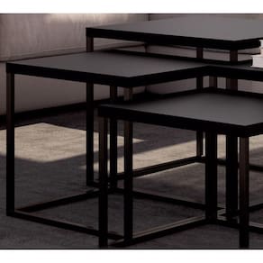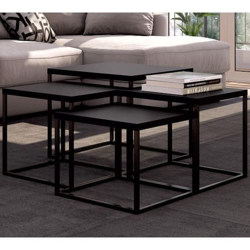 Combo Com 04 Mesas De Centro Cube, Linha Complementos Artesano, Com estilo industrial e design minimalista, é versátil com combinação entre vários módulos. Possui estrutura em tubos de Aço e acabamento com pintura anticorrosiva na cor Preto Fosco. Madeira ecologicamente correta em MDP de 25mm de espessura, com acabamento em pintura BP Fosco. Formato quadrado e tampo que suporta até 5kg cada, você pode apoiar aquele vasinho de flores, o seu livro ou uma bandeja com café gostoso para a visita, ideal para ficar no centro da sala de estar ou ainda ao lado do sofá, as formas de usar são muitas e ficam por conta da sua criatividade, as peças possuem tamanhos diferentes garantindo um visual sofisticado e moderno para seu ambiente. Mais produtos da Linha Artesano, você encontra em nosso site, podendo fazer a composição completa para sua casa, são diversos itens com design prático e funcional para tornar a vida mais facil e a casa mais alegre. Estes móveis chegarão em sua casa separados em 04 volumes.