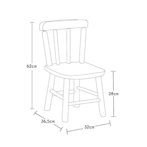 A Cadeira Kids possuí sua estrutura confeccionada emMadeira Maciça, já a Mesa possuí estrutura em madeira maciça e tampo em MDF de 3 CM, sua pintura não possuí substâncias tóxicas, ideal para as brincadeiras do seu pequeno.