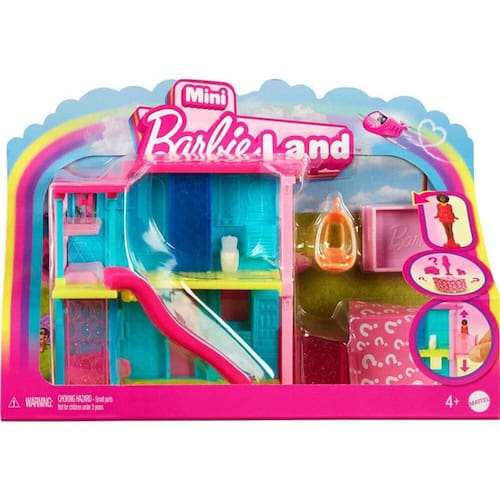Entre no mundo da boneca Barbie com a Mini BarbieLand -- um lugar para imaginar grande e sonhar em Mini! Construídos com fofura minúscula e grande surpresa, esses conjuntos de mini casas de bonecas estão prontos para brincar ou exibir