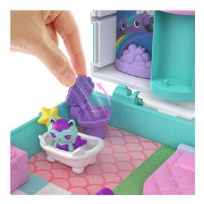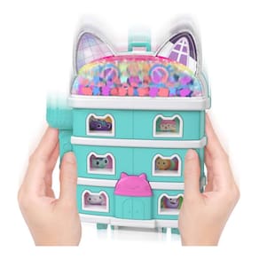 Gabby e seus três amigos gatinhos estão prontos para se divertir! No interior, explore recursos interativos como um elevador para gatos que desliza para visitar cada cômodo, uma faixa que se desenrola no salão de festas, uma penteadeira e uma cama que se abre para revelar surpresas.