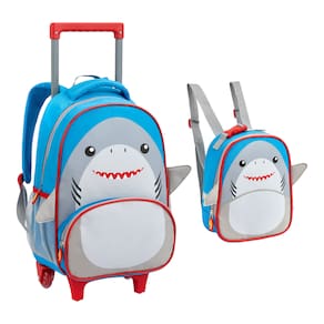 -Design vibrante: Estampa temática de tubarão, com detalhes que remetem ao oceano, ideal para crianças cheias de energia e imaginação. -Praticidade total: Bolsos amplos e organizados para guardar materiais escolares e itens essenciais. -Conforto e mobilidade: Rodinhas suaves e alças acolchoadas ajustáveis garantem versatilidade e comodidade para transportar. -Material resistente: Produzida em poliéster durável e fácil de limpar, ideal para o uso diário.