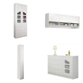 O Quarto Modulado Eloisa é ideal para você que procura qualidade e um design clean para o quartinho de seu filho (a). Produzido em MDF 15mm e acabamento em pintura UV (Brilho) atóxica. O Roupeiro possui 02 portas e 03 gavetas com corrediças telescópicas e um amplo espaço interno para acomodar as roupas facilitando na organização do dia a dia. O Roupeiro possui 01 porta e prateleiras internas bem elaboradas. O Módulo 03 portas e nicho decorativo com 03 repartições que possibilitam organizar os objetos. A Cômoda possui 01 porta, 04 gavetas com corrediças telescópicas e amplo espaço interno para roupas, acessórios e sapatos. Funcional e com traços refinados é a escolha perfeita para compor o quarto.