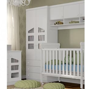 O Quarto Modulado Eloisa é ideal para você que procura qualidade e um design clean para o quartinho de seu filho (a). Produzido em MDF 15mm e acabamento em pintura UV (Brilho) atóxica. O Roupeiro possui 02 portas e 03 gavetas com corrediças telescópicas e um amplo espaço interno para acomodar as roupas facilitando na organização do dia a dia. O Roupeiro possui 01 porta e prateleiras internas bem elaboradas. O Módulo 03 portas e nicho decorativo com 03 repartições que possibilitam organizar os objetos. A Cômoda possui 01 porta, 04 gavetas com corrediças telescópicas e amplo espaço interno para roupas, acessórios e sapatos. Funcional e com traços refinados é a escolha perfeita para compor o quarto.