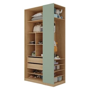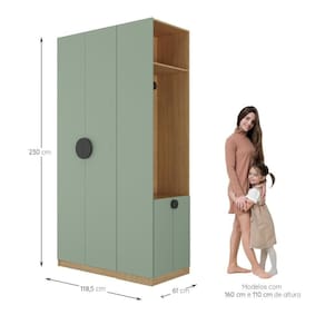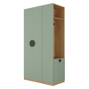 Conjunto Modulado Infantil 2 Peças com 4 Portas 2 Gavetas com Nichos e Sapateira Joy Kids CabeCasa MadeiraMadeira Verde/Avena. O guarda roupas Joy Kids CabeCasa foi desenvolvido para trazer a experiência de ter seu guarda roupas planejado por uma personal organizer. O móvel possui prateleiras reguláveis e removíveis que se adaptam a diversas necessidades. Conta também com um kit que pode conter gabaritos de dobra para roupas, separadores de cabides e adesivos para identificar todos os espaços. Possui um módulo de sapateira ideal para quem precisa de espaço para guardar seus calçados e ainda pendurar acessórios, além de um nicho que confere mais versatilidade e organização ao espaço, possui montagem flex, podendo ser montado tanto para direita quanto para esquerda. Além disso, tem design atual e alinhado às suas tendências que irão trazer muito mais sofisticação e aconchego para a decoração.