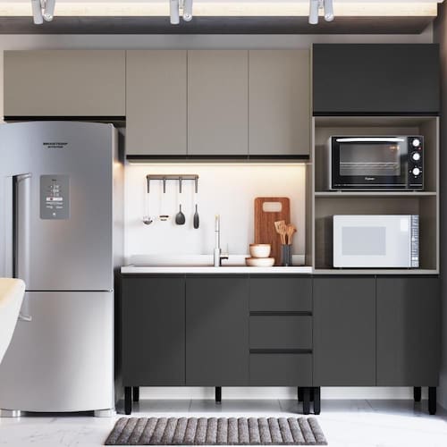 Nome do produto no fornecedor: Conjunto Mogno Fumê/Grafite | Marca: Quiditá | Fabricante: Quiditá | Itens Inclusos: 1 - Conjunto Cozinha / 1 - Kit Ferragens / 1 - Mnual de Montagem | Cor: Fumê | Cor para filtro: Fumê | Cor simples: Fumê | Cor do fornecedor: Fumê | Material: Móvel com predominancia em MDP, acompanha ferragens. | Material para filtro: MDP-MDF | Descrição do Tamanho: 1x1x1 | Altura do produto montado (cm): 1 | Largura do produto montado (cm): 1 | Profundidade do produto montado (cm): 1 | Peso do produto montado (cm): 180 | Largura Produto Com Embalagem (cm): 50 | Comprimento Produto Com Embalagem (cm): 128 | Altura do Produto com Embalagem (cm): 10 | Peso Produto Com Embalagem (Kg): 41 | Necessita Montagem: Sim | Requer Montagem: Sim | Intruções e Cuidados: Limpar utilizando apenas pano umedecido com água. Nunca utilizar produtos químicos ou abrasivos. | Tipo de produto: | Modelo: Móveis-Mogno-Cozinhas/Conjuntos | Quantidade de portas: 9 | Quantidade de Gavetas: 3 | Tipo de móveis de cozinha: Conjunto Cozinha | Com Prateleiras: Sim | Material das corrediças: Metal
