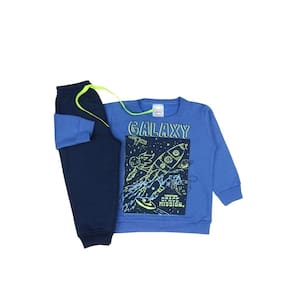Conjunto Moletom Azul Menino Infantil Outono Galáxia Frio