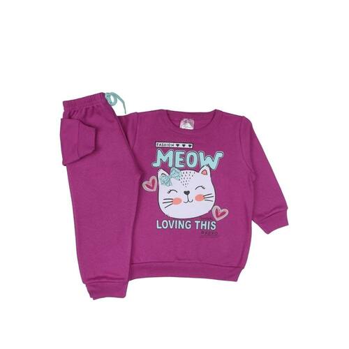 Conjunto Moletom Bebê Menina Gatinha Flanelado Fofo