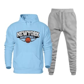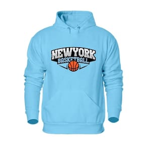 Conjunto Moletom Canguru Com Capuz Estampa New York Basketball Calça Flanelada Cordao Ajustavel - Azul Claro - G