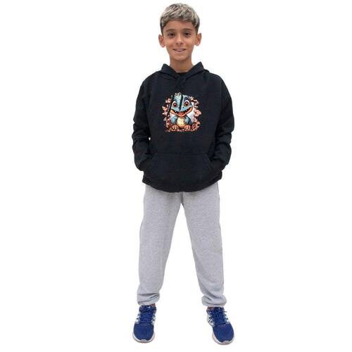 Conjunto Moletom Canguru Infantil Menino Estampa Dinossauro Com Calça Lisa Basica Dia a Dia - Preto - 8