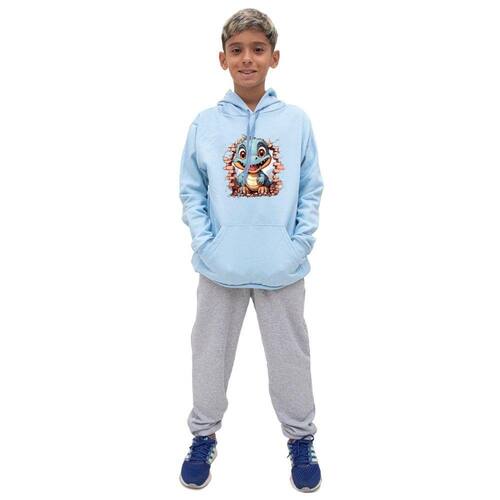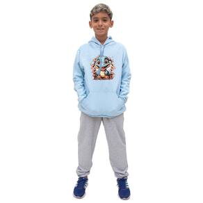 Conjunto Moletom Canguru Infantil Menino Estampa Dinossauro Com Calça Lisa Basica Dia a Dia - Azul Claro - 12