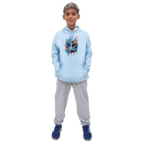 Conjunto Moletom Com Capuz Infantil Menino Estampado e Calça Basica Lisa Confortavel - Azul Claro - 12