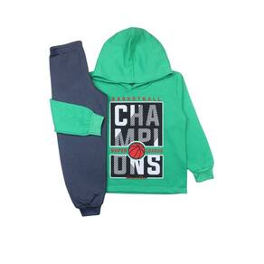 Conjunto Moletom Flanelado Menino Blusa com Capuz Verde claro e Cinza - Conjunto Moletom Flanelado Menino: Blusa com Capuz Verde claro e Cinza - Estilo e Conforto em Moda Infantil Larthani