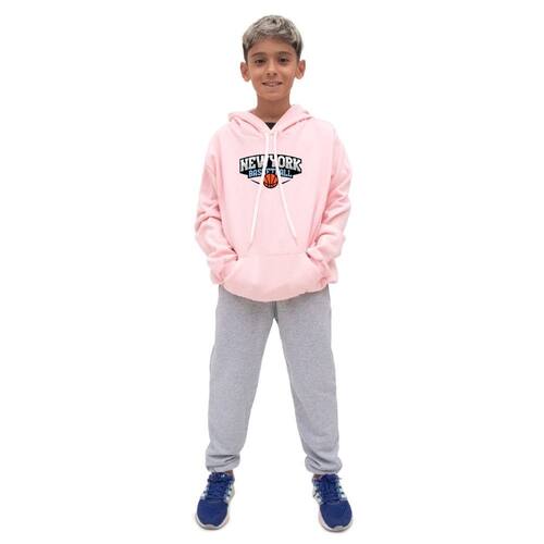 Conjunto Moletom Infantil Canguru Estampa New York Basketball Com Calça Estiloso Quentinho - 14 - Rosa