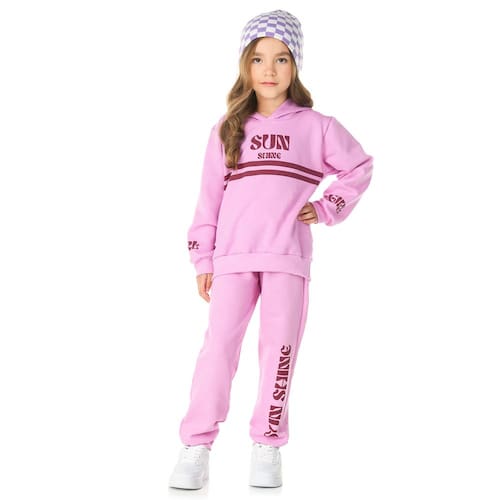 DETALHES DO PRODUTO Conjunto infantil composto por um blusão com capuz e uma calça. 1 Casaco infantil confeccionado em moletom peluciado 100% algodão. Modelagem tradicional com punho e estampa frontal em silk. 1 Calça infantil confeccionada em moletom peluciado 100% algodão. Modelagem tradicional com punho, elástico na cintura e aplique de cadarço. COMPOSIÇÃO Casaco Infantil Moletom Peluciado 100% algodão.
