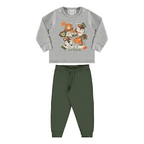 Conjunto com blusão e calça em moletom felpado, calça modelo jogger.