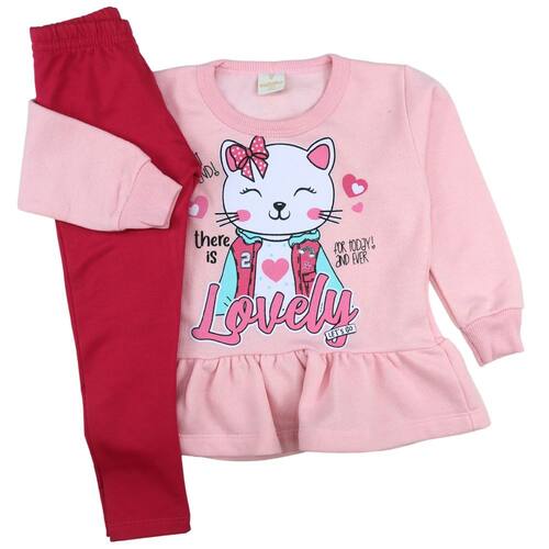 Conjunto Moletom Menina Blusa com Babado e Legging Peluciada - Rosa - 1