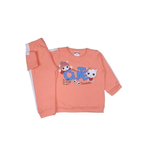 Conjunto Moletom Salmão Bebê Menina Gatinhas Inverno Fofinho - Conforto e Delicadeza para os Dias Gelados da sua Pequena