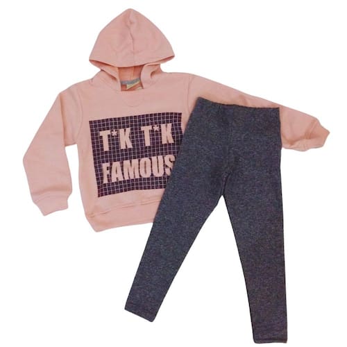 Conjunto moleton infantil fem capuz Vrasalon rosa/cinza - Cinza - 6