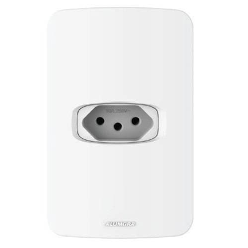 Conjunto Montado Gracia 4X2 + 1 Tomada 10A 250V Alumbra - Produto com design inovador, ideal para suas instalações elétricas. - possui suporte com regulagem, permitindo perfeito ajuste do conjunto à parede. - Fabricados em termoplástico de engenharia com alto brilho com aditivo auto extinguível e proteção contra raios UV. - Material: Materiais plásticos partes isolantes e ligas metálicas. - voltagem: 250v - Conteúdo: 1- placa 4x2 e 1- tomada 10a