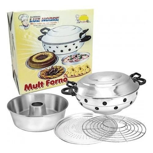 Churrasqueira De Fogão, Forma De Bolo E Pizza - Luz Nobre A Churrasqueira de Fogão, Forma de Bolo e Pizza da Luz Nobre é o item indispensável para a sua cozinha. Com ela, você poderá preparar deliciosos churrascos, assar pizzas e bolos de forma rápida e prática, diretamente na chama do fogão. A multifuncionalidade deste conjunto permite que você prepare uma alimentação mais saudável e saborosa. Além de assar pizzas, você também poderá fazer bolos, pudins, pães de queijo e gratinar legumes. Tudo isso de maneira muito mais rápida do que se fosse feito no forno convencional, economizando gás e energia. O Conjunto Mult Forno é composto por uma base e uma tampa com espessuras de 1,1mm e 1,0mm, respectivamente. A forma para bolo possui espessura de 0,9mm e capacidade para 3,5 litros. Já a forma para pizza é perfurada e possui espessura de 0,8mm. Todo o conjunto é fabricado em alumínio, garantindo durabilidade e resistência. Além disso, a Churrasqueira de Fogão, Forma de Bolo e Pizza da Luz Nobre é acompanhada por uma embalagem de luxo em caixa litografada, tornando-a também uma ótima opção de presente para quem você ama. Não perca tempo e adquira agora mesmo a Churrasqueira de Fogão, Forma de Bolo e Pizza da Luz Nobre. Surpreenda-se com a praticidade e versatilidade deste incrível produto! Especificações Técnicas: - Marca: Luz Nobre - Modelo: Churrasqueira De Fogão, Forma De Bolo E Pizza - Material: Alumínio - Espessura da Base: 1,1mm - Espessura da Tampa: 1,0mm - Espessura da Forma para Bolo: 0,9mm - Litragem da Forma para Bolo: 3,5 Litros - Espessura da Forma para Pizza Perfurada: 0,8mm - Embalagem: Caixa Litografada 1. Qual o material deste conjunto? R: O conjunto é fabricado em alumínio, garantindo durabilidade e resistência. 2. Posso assar bolos e pizzas diretamente na chama do fogão? R: Sim, este conjunto é ideal para assar bolos, pudins, pizzas e grelhados diretamente na chama do fogão, proporcionando uma alimentação mais saudável e saborosa. 3. A forma de pizza pode ser Utilizado para outros alimentos além de pizzas? R: Sim, a forma de pizza também pode ser Utilizado para assar pães de queijo, gratinar legumes e outros alimentos. 4. Este conjunto economiza gás? R: Sim, ao assar os alimentos diretamente na chama do fogão, você economiza gás, pois o processo é mais rápido do que se fosse feito no forno convencional. Não perca a oportunidade de adquirir a Churrasqueira de Fogão, Forma de Bolo e Pizza da Luz Nobre. Garanta agora mesmo a sua e desfrute de uma alimentação mais prática e saborosa!