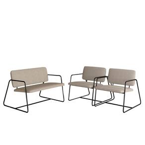 O conjunto namoradeira com poltronas no estilo industrial Sintra é uma união harmoniosa de design funcional e uma estética marcante, que evoca o charme bruto dos espaços industriais.
