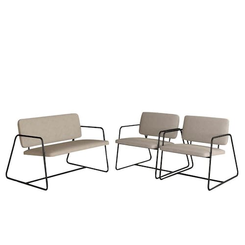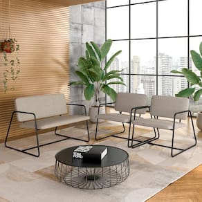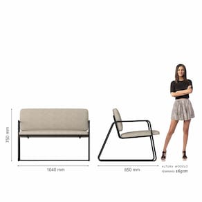 Detalhes Técnicos - Assento e Encosto Tapeçados, Estofados e Fixos - Espuma do Assento e do Encosto: D20 - Tonalidade: Preto Fosco (estrutura)/Suede Bege(estofado) - Material: Metalon - Medida Poltrona Namoradeira: A:75CM x L:104CM x P:85CM - Medida do chão até o assento: 45cm de altura - Poltrona e Namoradeira suporta até 120KG (cada) - Montagem: Difícil - Medida Poltronas: A:75CM x L:68CM x P:85CM - Medida do chão até o assento: 45cm de altura - Poltronas suportam até 90KG - Montagem: Difícil Conteúdo da Embalagem - 01 namoradeira + 02 poltrona - Manual de Montagem - Acessórios para Montagem Observações Importantes - As imagens ambientadas são meramente ilustrativas e podem apresentar itens que não incorporam o produto; - Todos os nossos produtos são novos, acompanham documento fiscal e possuem garantia de 3 meses, essa garantia cobre somente defeitos de fabricação; - A entrega só será efetuada no endereço do CEP, caso o endereço seja diferente do CEP informado no pedido, a entrega terá cobrança adicional e o comprador arcará com as despesas; - Não realizamos entregas para zonas rurais, via caminhos fluviais e distritos, por isso não aceitamos CEP GERAL da região; - Não é possível realizar o agendamento de entrega do produto, é necessário que acompanhe o rastreio de seu pedido para saber a previsão de entrega; - As entregas somente serão realizadas para um responsável maior de idade (+18); - Enviamos para diversos estados, sendo assim nossas entregas são realizadas por transportadoras parceiras de nossa empresa. Confira as dimensões antes da compra e certifique-se de que o produto passará por elevadores, portas e corredores já que nossa entrega não inclui a subida de lances de escada, transporte por elevador e o lançamento de produtos, em caso de condomínios residenciais a entrega é feita somente até a portaria. Todas as entregas são realizadas em dias e horários comerciais; - Ao receber os seus produtos observe se a embalagem se encontra em perfeitas condições. Se você adquiriu algum móvel, confira atentamente a quantidade de volumes e o aspecto físico das embalagens. Confira também se a cor do móvel está de acordo com o seu pedido; - O prazo de cancelamento por arrependimento é de até 7 dias corridos a contar da data de recebimento; - Os produtos e assistências são enviados DESMONTADOS, MONTAGENS E DESMONTAGENS recomendamos sempre a contratação de um montador profissional e é válido lembrar que o custo desses serviços é por conta do comprador; - Objetos decorativos que aparecem na foto não acompanham o produto; - Evitar a exposição direta à luz solar e à umidade; - Para limpeza, limpar com pano macio e seco, não utilizar qualquer outro tipo de produtos químicos; - As cores do produto podem variar de acordo com o monitor, a iluminação do ambiente ou sua percepção visual.