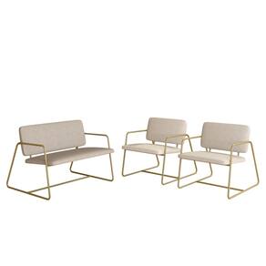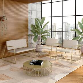 Conjunto Namoradeira E Poltronas Sintra Industrial Dourado/bege- M.a