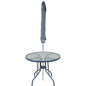 Conteúdo da embalagem: 1 Conjunto Noronha Cinza com Mesa 4 Cadeiras e Guarda Sol
