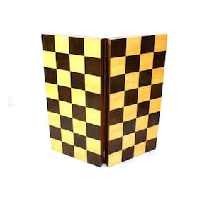 - Tabuleiro fabricado em madeira maciça (marchetado com lâminas imbuia e marfim);