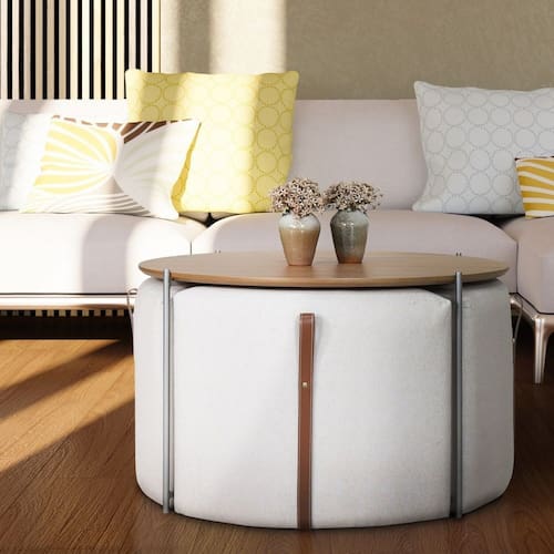 Itens Inclusos: 011 Mesa de centro, 04 Puff e Manual de Montagem