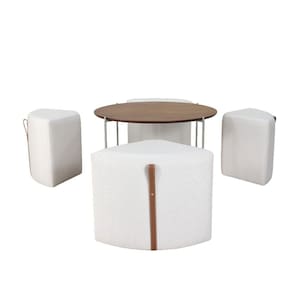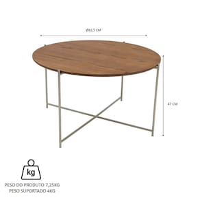 Conjunto Onix Mesa Centro Ø82,5 Madeira/metal e 04 Puff Amêndoa/Níquel - Marrom