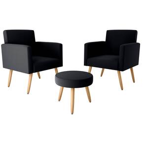 Conjunto p/ Sala Dallas 2 Poltronas Decorativas e 1 Puff Veludo Inca Preto - Matrix