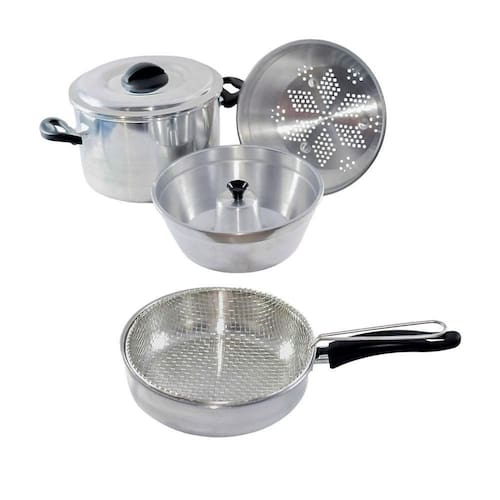 Conjunto Panela a Vapor Banho Maria 4x1 e Frigideira Cesto
